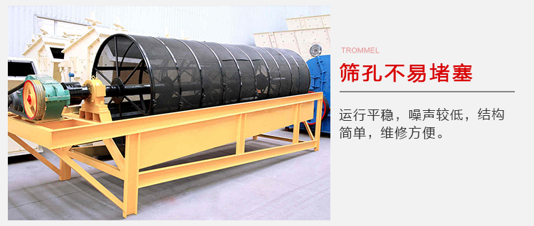電機(jī)驅(qū)動(dòng)滾筒軸線作旋轉(zhuǎn)運(yùn)動(dòng),減速機(jī)調(diào)節(jié)筒體以一定的轉(zhuǎn)速旋轉(zhuǎn),物料由進(jìn)料口進(jìn)入筒體內(nèi),在旋轉(zhuǎn)產(chǎn)生的離心力作用下,物料在筒內(nèi)翻滾,自上而下通過分級篩網(wǎng)析出,由于篩網(wǎng)分級尺寸不同,物料逐漸被分離篩選,粒度合格的物料經(jīng)篩分后落入到各自的漏斗,然后由人力方式運(yùn)出或通過輸送機(jī)自流送往成品站。合格產(chǎn)品經(jīng)過下端出料口排出,顆粒較大,分選不合格的產(chǎn)品經(jīng)另一排料口排出,筒內(nèi)清理裝置,使篩網(wǎng)不宜被阻塞。