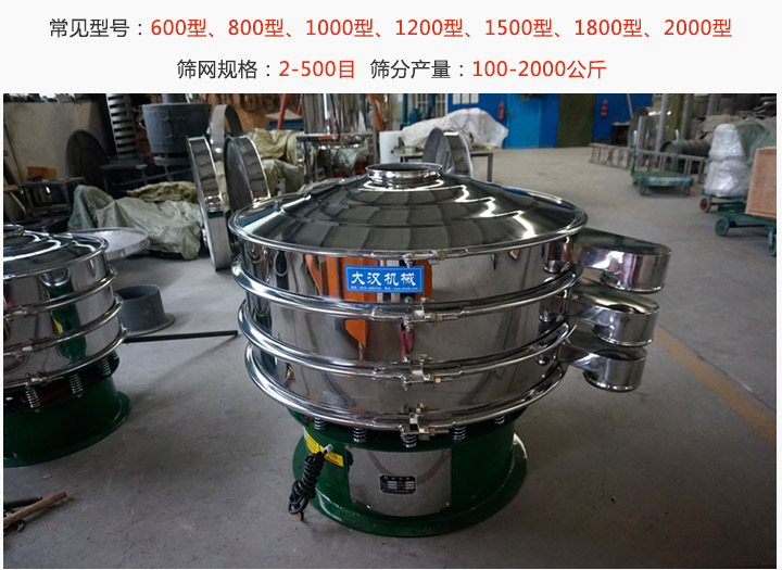 雙層旋振篩的常見型號有600型、800型、1000型、1200型、1500型、1800型、2000型等,物料在篩面上做三次元運(yùn)動,不易堵料,透網(wǎng)率高,可以進(jìn)行液體、粉體、固體顆粒的篩分與分級,篩網(wǎng)規(guī)格在2-500目之間,每小時產(chǎn)量在100-2000公斤之間。