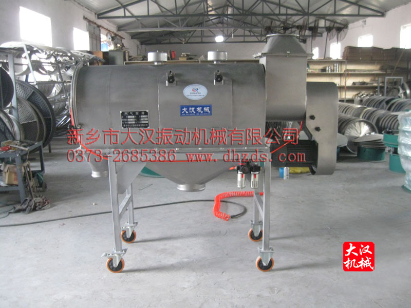 大漢牌臥式氣流篩WQS30-100型電機(jī)功率為4kw,304不銹鋼材料,外部噴砂,該機(jī)篩網(wǎng)為圓筒狀,置于機(jī)體內(nèi),物料通過(guò)螺旋輸送系統(tǒng)后,和氣流混合、霧化進(jìn)入網(wǎng)筒內(nèi),通過(guò)網(wǎng)筒內(nèi)風(fēng)輪葉使物料同時(shí)受離心力和旋風(fēng)推進(jìn)力,從而迫使物料噴射過(guò)網(wǎng),由細(xì)料排出口排出,不能過(guò)網(wǎng)的物料沿網(wǎng)筒壁從粗料排出口排出。