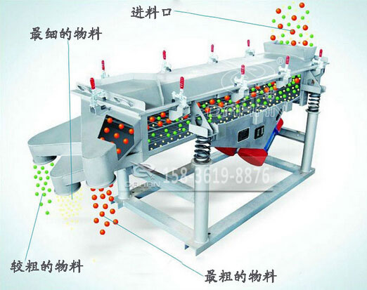 DZSF系列直線篩為雙振動電機驅(qū)動。當(dāng)兩臺振動電機做同步、反向旋轉(zhuǎn)時,其偏心塊所產(chǎn)生的激振力在平行于電機軸線的方向相互抵消,在垂直于電機軸的方向疊為一合力,因此篩機的運動軌跡為一直線。兩電機軸相對篩面在垂直方向有一傾角,在激振力和物料自重力的合力作用下,物料在篩面上被拋起跳躍或向前作直線運動,從而達(dá)到對物料進(jìn)行篩選和分級的目的。適用于粒度在0.074—5mm,含水量小于7%,無粘性的各種干式粉狀或顆粒狀物料的篩分。大給料粒度不大于10mm.